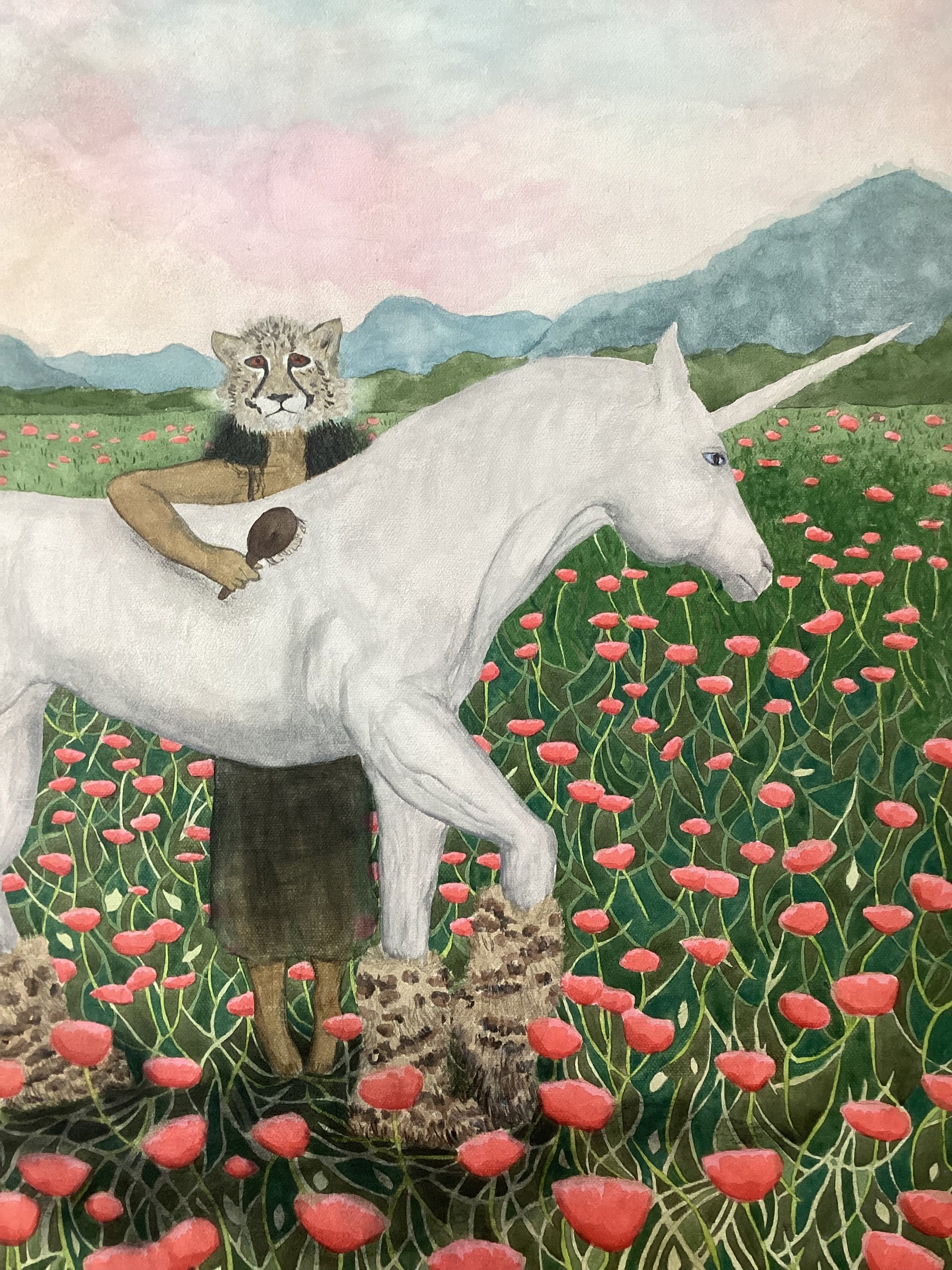 Original painting (watercolor, gouache, charcoal) on stretched canvas